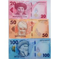 Киргизия 20, 50, 100 сом 2023 UNC компл. 3 бнкн